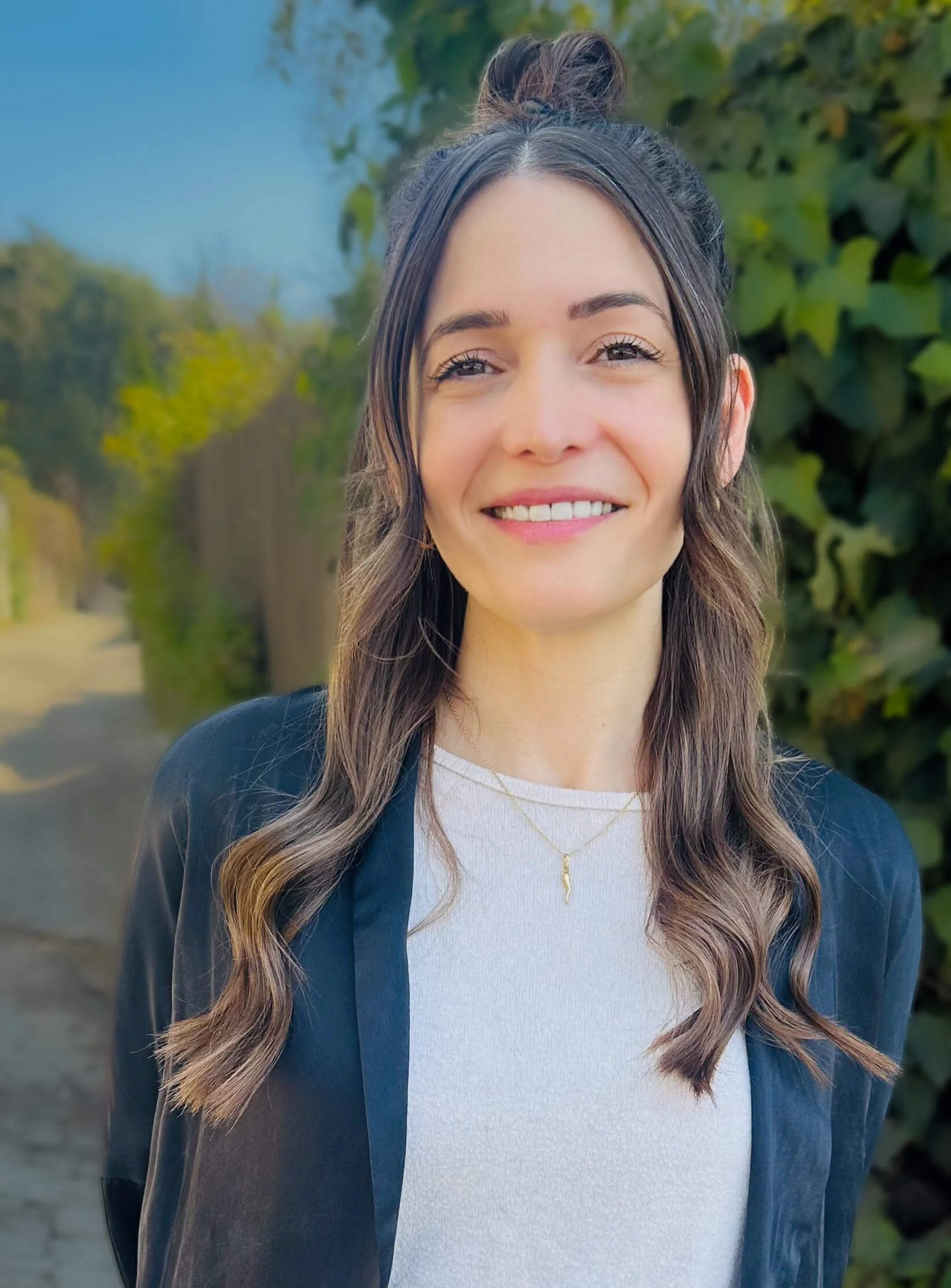 Founder of Piena Lactation and Wellness and licensed massage therapist, Tina Montalto, smiles at the camera in Los Angeles.