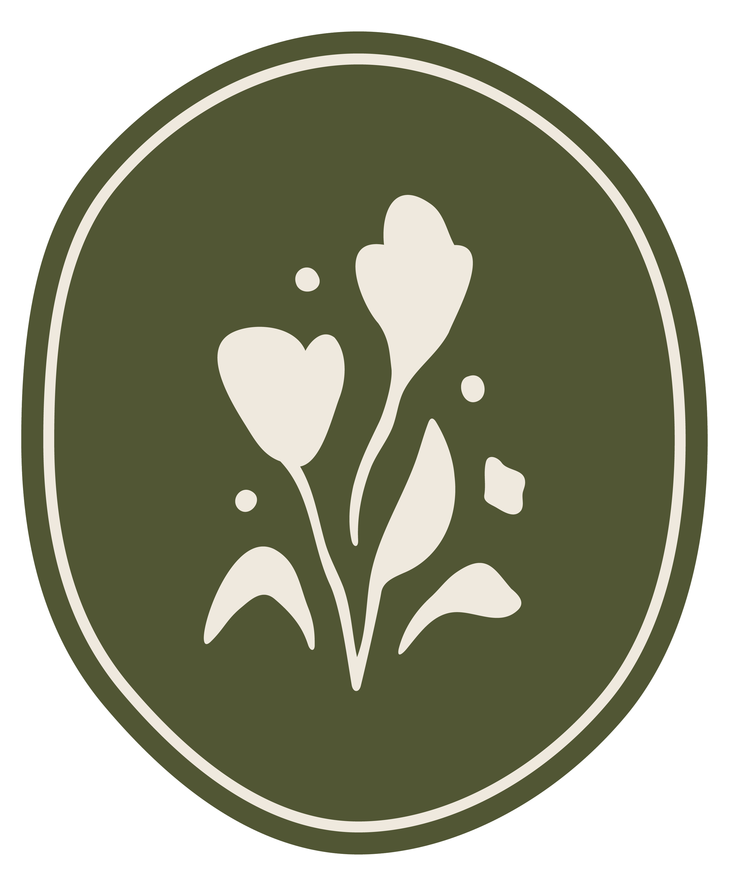The Piena Lactation and Wellness floral submark in beige on aolive green.